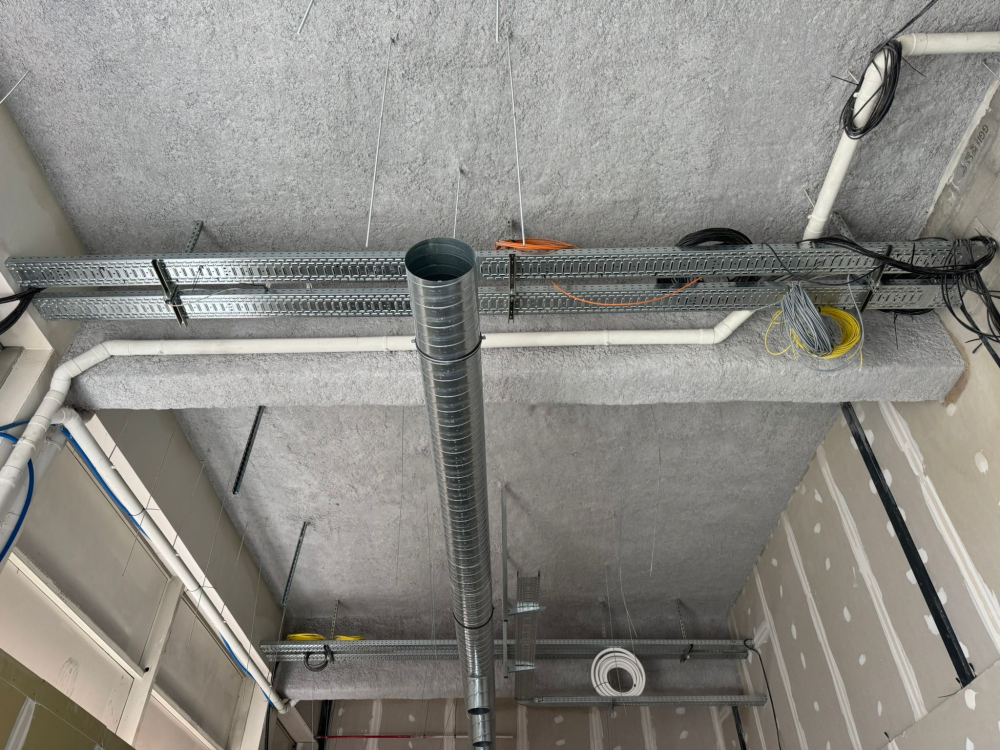 SIP a effectué des travaux d'isolation de plafond et murs par projection de laine de roche coupe-feu et à procéder à l'encoffrement des gaines PROMAT à Chambéry, SIP vous présente ses dernières photos.
