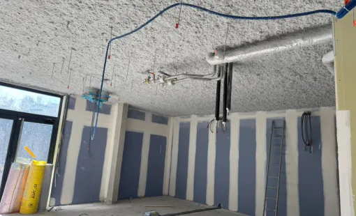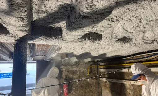 SIP a effectué des travaux d'isolation par flocage sous dalle afin d'obtenir la résistance thermique et le degré coupe-feu demandé, dans une résidence...