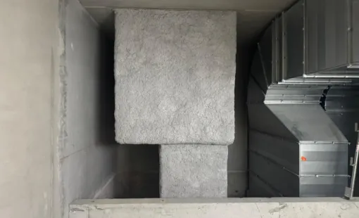 Projection de laine de roche sur gaine de ventilation à Grenoble par SIP