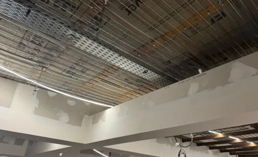 SIP a effectué des travaux d'isolation de plafond et murs par projection de laine de roche coupe-feu et à procéder à l'encoffrement des gaines PROMAT ...